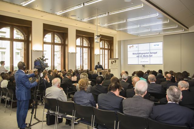 80 Personen haben am Wirtschaftsgespräch teilgenommen, das anlässlich des Besuches Senegals Staatschef Macky Sall vom Afrika-Verein (Aussenwirtschaftsverband deutscher Unternehmen und Institutionen mit wirtschaftlichem Interesse in Afrika) in den Räumlichkeiten der KfW am 1. April 2014 in Berlin organisiert wurde.